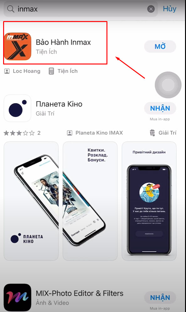 Tìm “Inmax” hoặc “bảo hành Inmax” và truy cập vào app Bảo hành INMAX